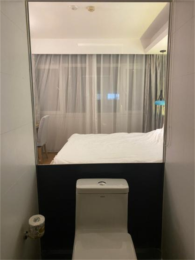 更加讓我覺得震驚的是:住過的其中一個酒店給玻璃墻做了卷簾,但萬萬沒想到的是,卷簾設計在衛生間外面!對,就是你想的那樣,外面的人可以直接在衛生間外面把卷簾拉上去,OMG!這到底是為了什么惡趣味?